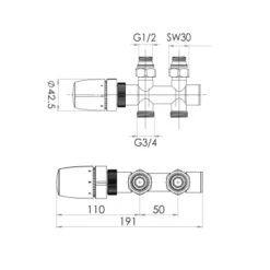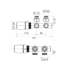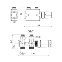 Schulte ExpressPlus Design-Thermostatkopf Mittenanschlussgarnitur Mattschwarz