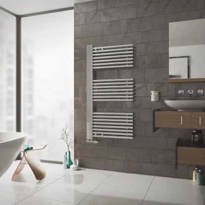 Badheizkörper in verchromter Ausführung finden speziell Anwendung als Handtuchwärmer und Handtuchtrockner.