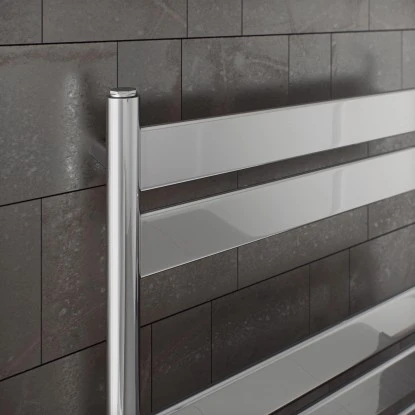 Die flachen verchromten Querpaneele verleihen dem modernen Badheizkörper C6 den Charme eines Paneelheizkörpers.