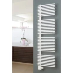 Der Designheizkörper Helene ist seitlich offen gestaltet und somit die noch praktischere Version eines klassischen Badheizkörpers. Die aufgesetzte Ausführung kombiniert mit der praktischen, seitlichen Öffnung verleiht dem Badheizkörper Helene seine spezielle Eleganz gepaart mit breiten Einsatzmöglichkeiten. Durch die symmetrische Aufteilung der Rohre kann dieser Handtuchwärmer ideal um 180° gedreht werden. Somit kann die Ausrichtung der Rohre selbst bestimmt werden. Dieser Ximax Badheizkörper kann innerhalb jeder gängigen Zentralheizung eingebaut werden und ist mit jedem handelsüblichen Thermostatventil oder jeder gängigen 50 mm Anschlussgarnitur kombinierbar.